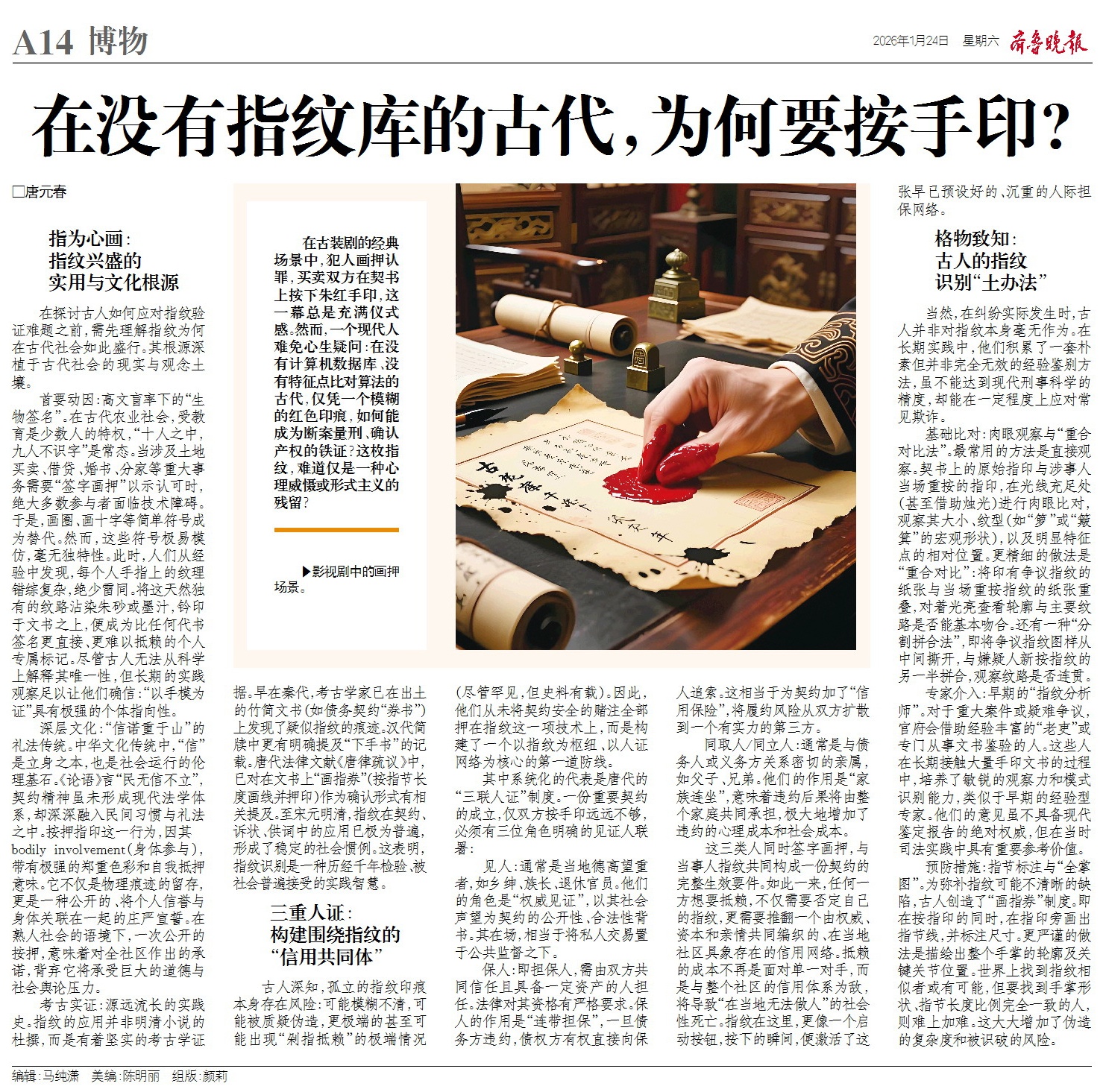 在没有指纹库的古代,为何要按手印?
