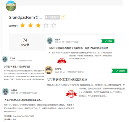 要知道,婴童食品是食品行业中监管最严格的细分领域之一,质量管理体系是基础,更是大型商超、电商平台的常见准入门槛。爷爷的农场在运营近十年后才补齐这一基础认证,这种“先扩张、后补合规”的操作,本身就存在明显的不合规隐患,也进一步印证了其品控体系的先天薄弱。