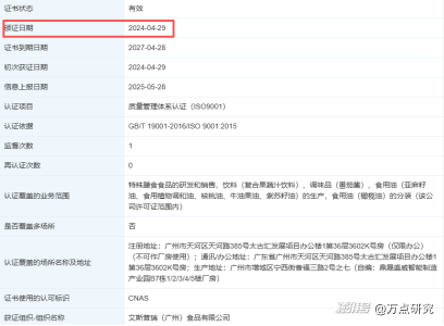 更值得注意的是,作为一家2015年就启动运营、2018年便推向市场的婴童零辅食品牌,其质量管理体系认证直至2024年才获得。