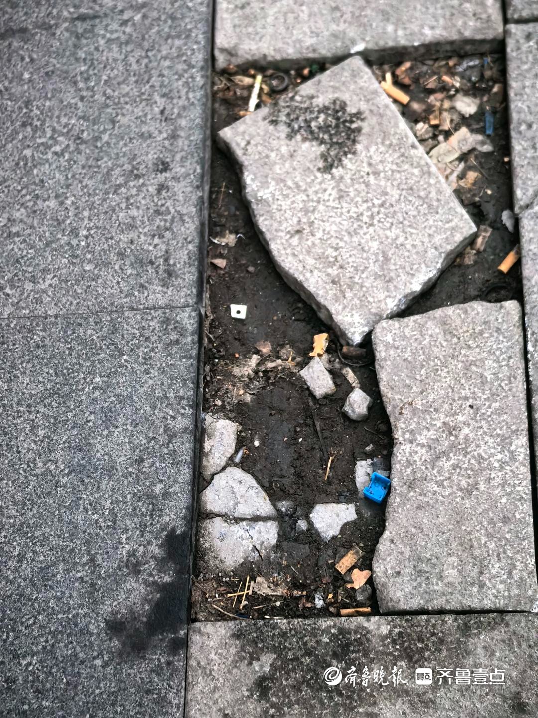 1月26日,情报员“KS625689”向齐鲁晚报官方客户端齐鲁壹点情报站发来一则情报,在济南东关街道历山路“万科海晏门”东门门口,顺大门往北去的一条人行道北头,这里有几家销售维修摩托车的店铺,店铺门前的石板小路上很多石板已经破烂不堪,每天都有不少市民从此处路过,或骑电动车或骑自行车或者步行。骑行在这条路上,即便是没有损坏的石板路,也会发出“哐当,哐当”的声响,破烂的石板路很容易造成事故,并有可能伤害到路人的腿脚,希望能得到修复。