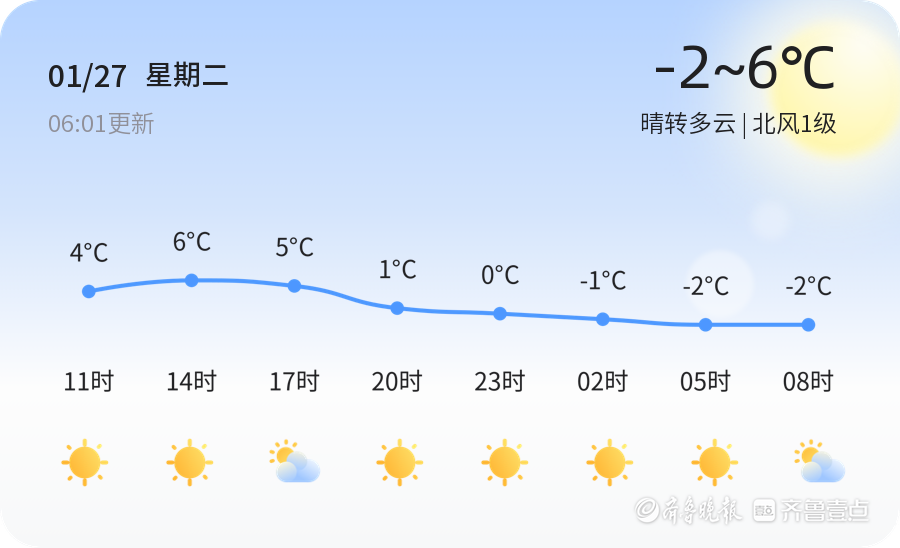 今日是2026年1月27日,星期二,农历十二月初九。枣庄市今日天气为晴转多云,气温范围在-2℃至6℃之间,当前温度为-3.5℃。北风1级,空气湿度高达94%,PM2.5指数为152,空气质量状况为中度污染。提醒市民外出时注意佩戴口罩,做好防护措施。由于气温较低,建议市民出行时增添衣物,注意防寒保暖。此外,早晨有大雾橙色预警,滕州市部分区域可能出现能见度小于200米的强浓雾,市民需特别注意交通安全,减速慢行,保持车距。