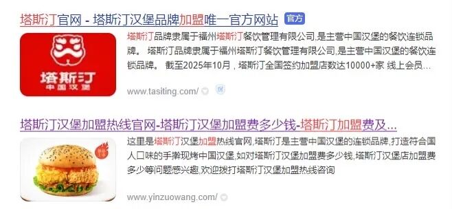 上方链接:塔斯汀官网 下方链接:虚假“塔斯汀加盟官网”