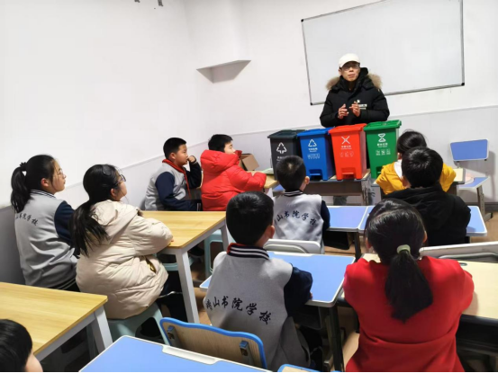 为深入推进垃圾分类工作常态化开展,让绿色环保理念扎根童心,带动家庭共同践行垃圾分类新风尚,1月28日,青岛市崂山区北宅街道垃圾分类宣传员走进北宅科村“优知学托管”托辅班,为这里的孩子们带来了一场别开生面、寓教于乐的垃圾分类科普宣传活动,用趣味互动点亮孩子们的环保初心,让分类知识融入成长日常。