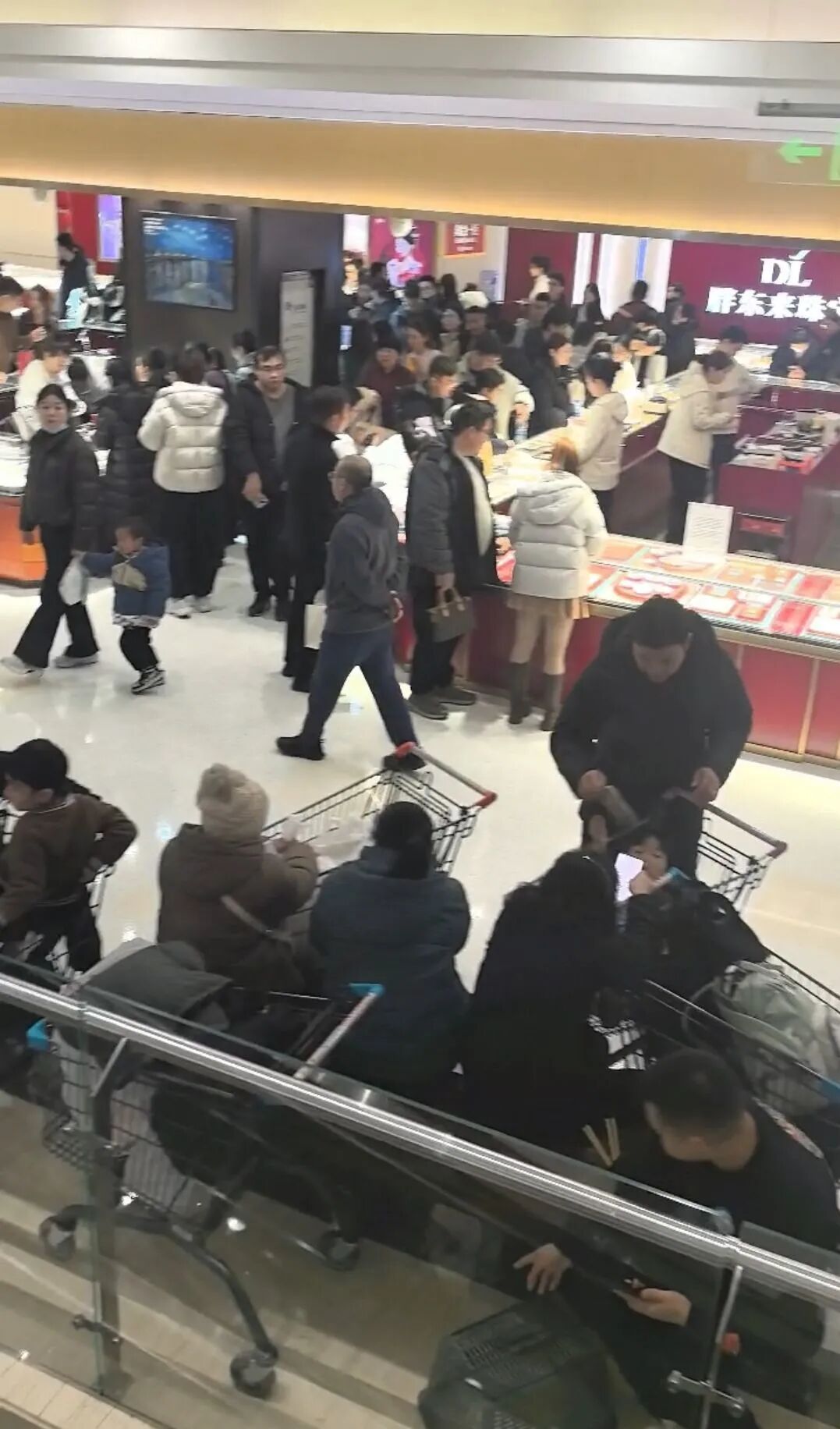 一名从事胖东来代购业务的小哥告诉极目新闻记者,最近,在许昌胖东来时代广场店,排队买黄金的人非常多,如果没有在线上提前预约,需要在线下排队预约。商场会把提前预约的顾客服务完后,根据现场客流情况,安排顾客再排队购买,最多的时候要等两三个小时。一般临近下午,很多金条、金饰就基本售空了。1月28日下午2点21分,他发现柜台的黄金基本销售一空,并拍摄了相关视频。