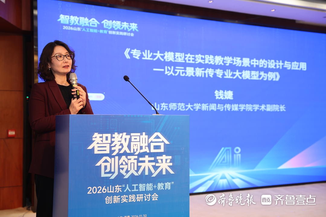 当AI生成7700字稿件无需修改、智能体自动组建“编辑部”团队完成早报生产,新闻行业正被人工智能技术深刻重塑。面对这场变革,新闻教育该如何应对?1月30日下午,由山东省人工智能学会指导,山东数字文化集团主办,齐鲁晚报·齐鲁壹点承办的2026山东“人工智能+教育”创新实践研讨会上,山东师范大学新闻与传媒学院学术副院长钱婕给出了该校的答案:携手齐鲁晚报·齐鲁壹点,共同打造国内首个面向新闻传播专业的实践教学类大模型“元景”,并将其定位为“逼迫学生进行更高阶思考的磨刀石”。