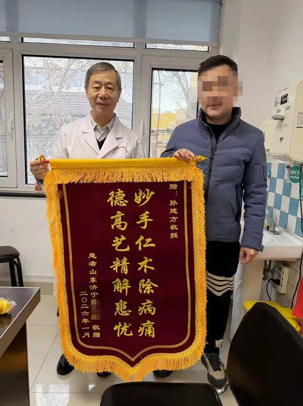 2026年1月10日,天气虽然寒冷,在济南市皮肤病防治院却上演了温馨一幕:一位来自济宁的秦先生(化名),将一面写有“妙手仁术解病痛,德高艺精解患忧”的锦旗,亲手送到了医院特聘专家、国内知名皮肤病学专家孙建方教授手中。