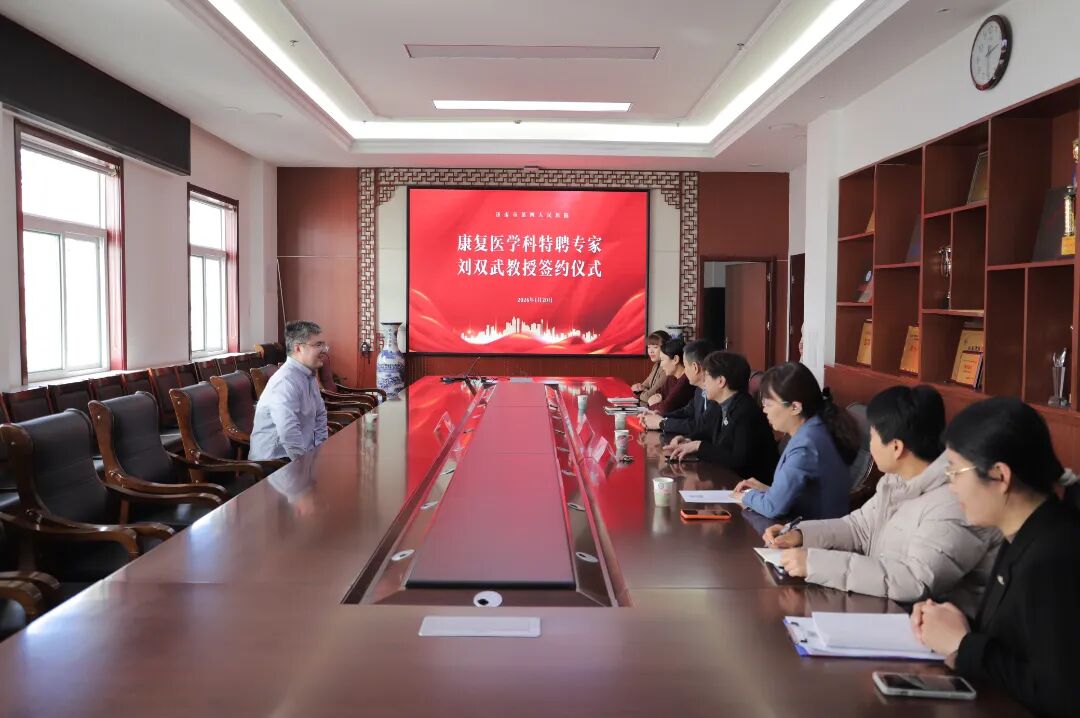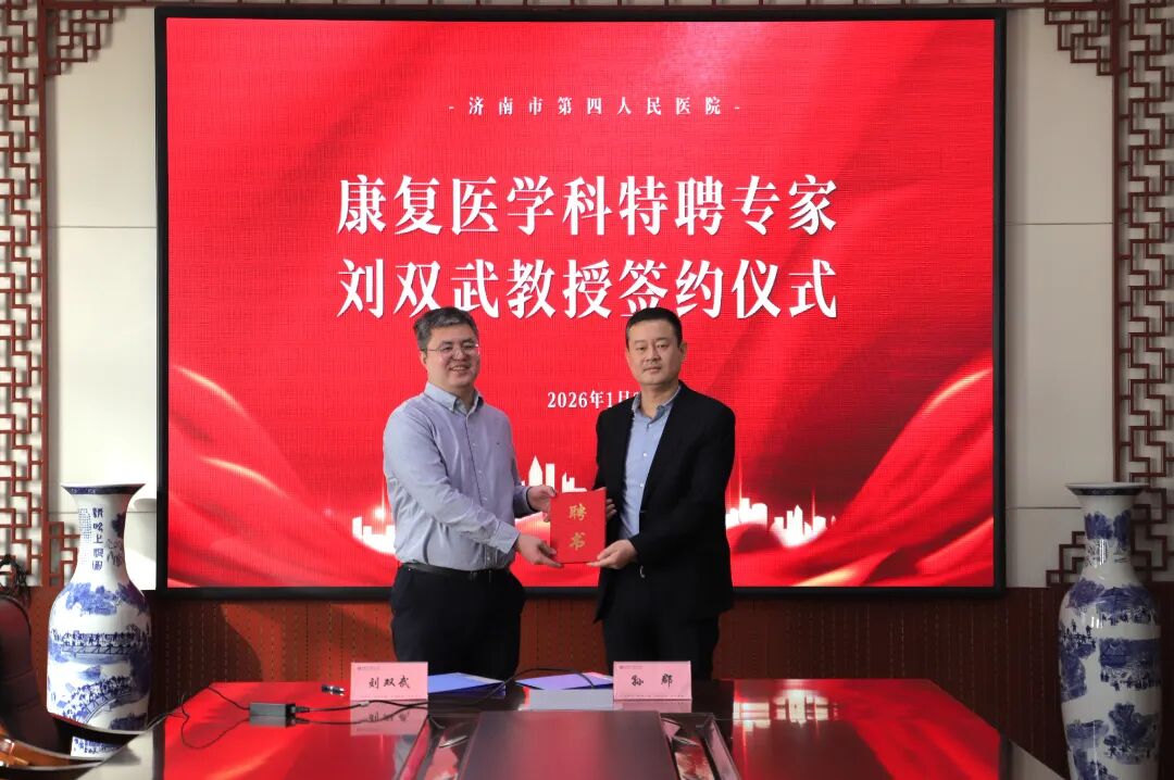 近日,济南市第四人民医院举行签约仪式,正式聘任山东大学护理与康复学院副研究员、齐鲁医院兼聘副研究员、硕士研究生导师刘双武教授为康复医学科特聘专家。医院党委书记孙郡、纪委书记李静及相关职能科室负责人出席仪式。