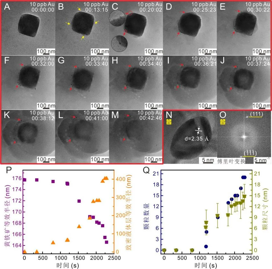第13分钟,黄铁矿表面突然泛起一层厚度仅3纳米的朦胧薄雾,像给晶体裹上了一层“液体蚕丝被”。这层致密液体层,如同一个纳米级无菌舱,一个微型的“黄金生产车间”就此落成。
