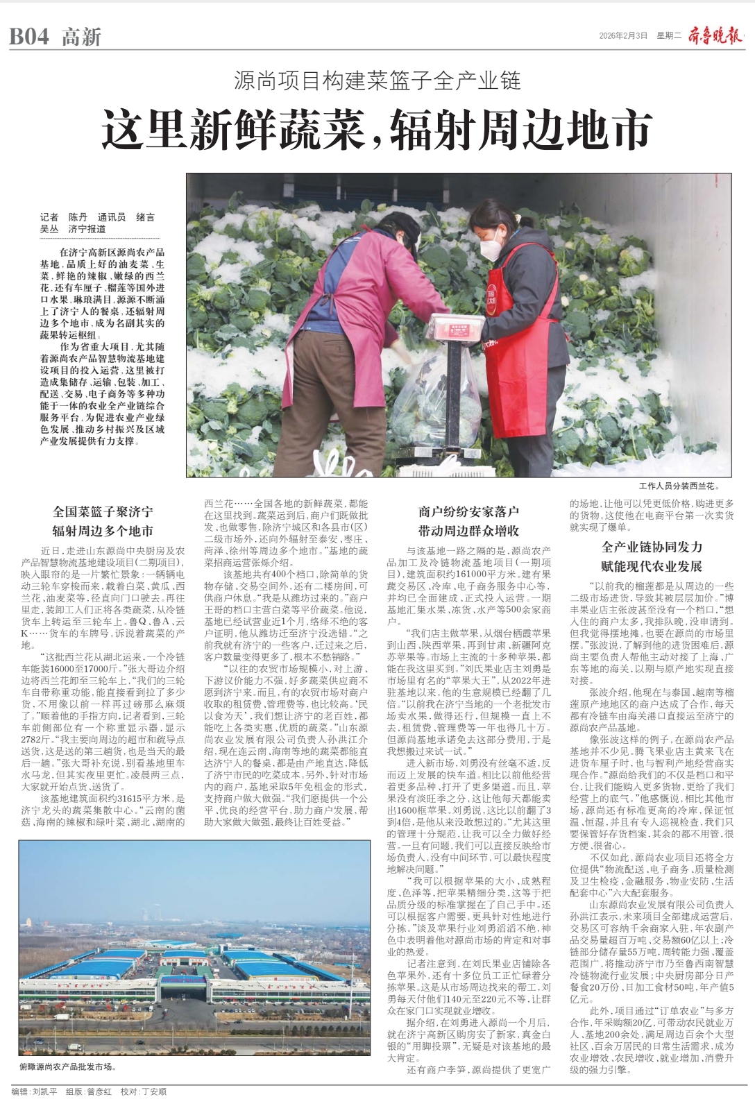 该基地建筑面积约31615平方米,是济宁龙头的蔬菜集散中心。“云南的菌菇、海南的辣椒和绿叶菜、湖北、湖南的西兰花……全国各地的新鲜蔬菜,都能在这里找到。蔬菜运到后,商户们既做批发、也做零售,除济宁城区和各县市(区)二级市场外,还向外辐射至泰安、枣庄、菏泽、徐州等周边多个地市。”基地的蔬菜招商运营张烁介绍。