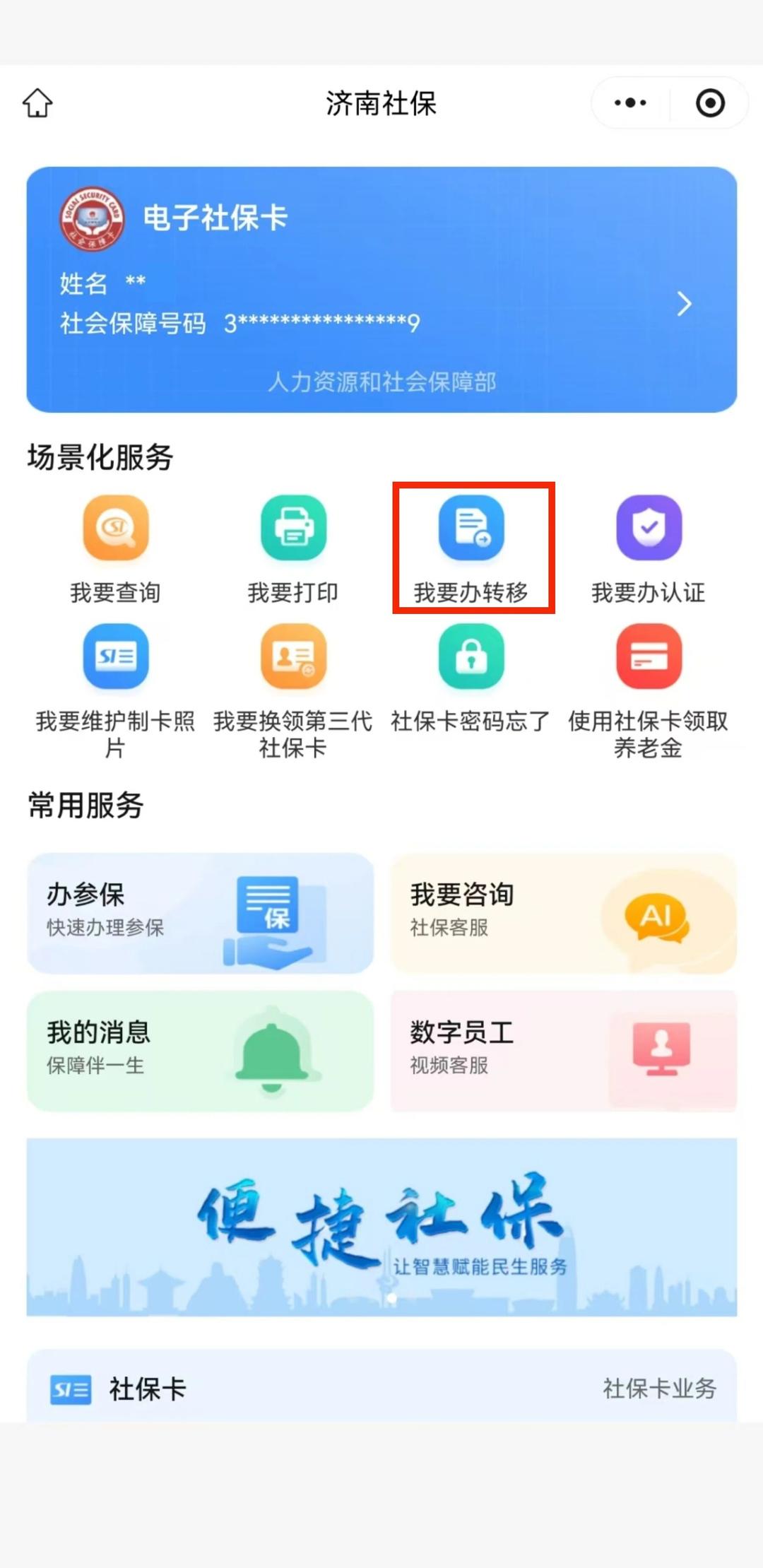 养老保险跨省转移接续可线上办理。参保人在济南市参保后,通过“济南社保”微信公众号点击“办社保”“网办直达”,在办事页面中选择“我要办转移”,办理养老保险的跨省转移业务。