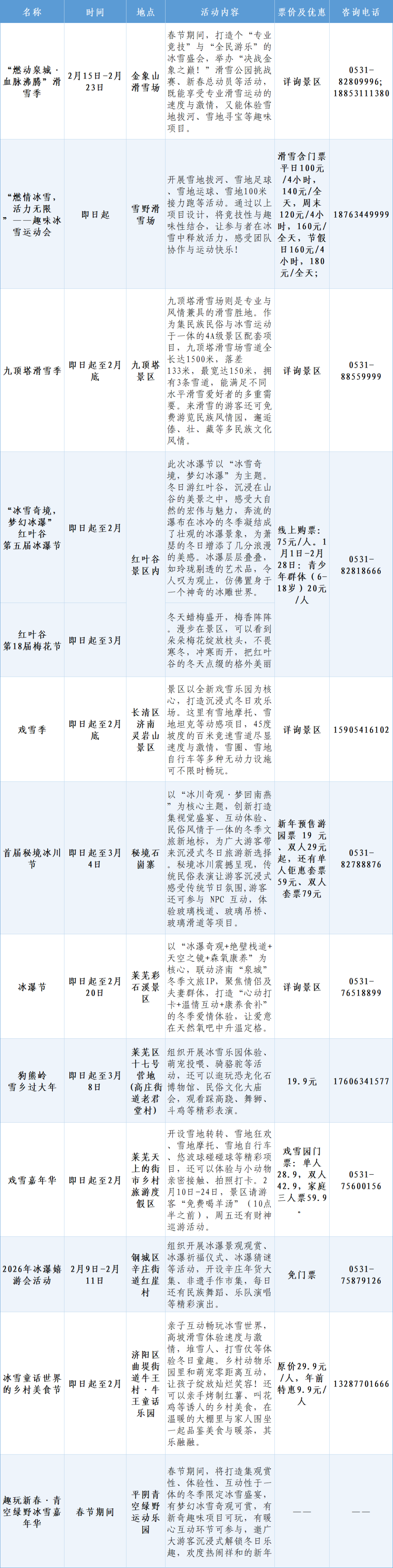 市中区石崮寨、钢城红崖村推出冰川节、冰瀑嬉游会,融合民俗表演、互动打卡。