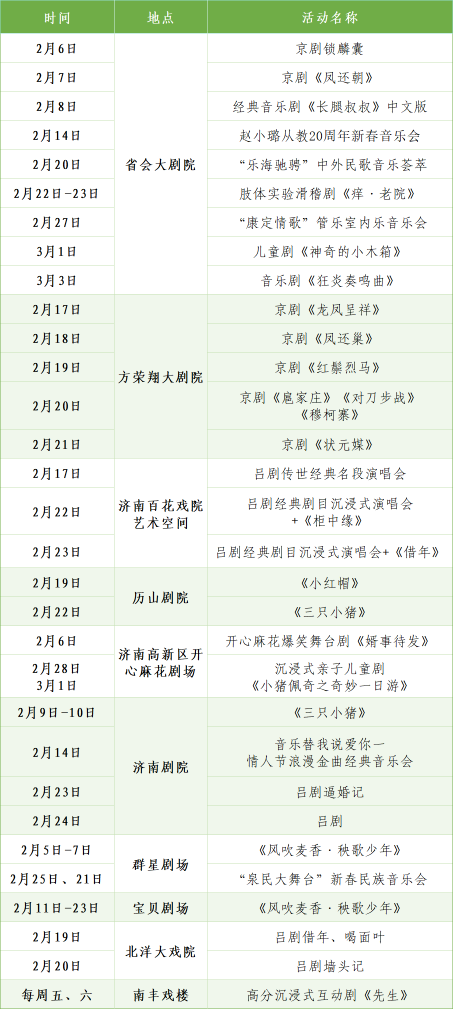 保利山东省会大剧院上演新中式舞蹈秀、经典音乐剧等,高品质演出轮番登台;方荣翔大剧院、百花戏院主打京剧、吕剧经典剧目,解锁传统戏曲新体验。