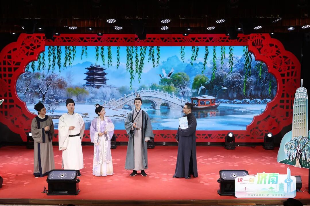 活动现场,情景剧《再聚历下亭·共赏泉城景》让李白、杜甫、辛弃疾、李清照等历史名士“穿越”古今,以生动幽默形式展现济南特色文旅资源与深厚城市文化,并创意推介新春年俗、冰雪奇境、潮玩泉城、文脉薪传,诚邀全国游客 “马上”游济南,品年味、赏泉景、享欢乐,共赴泉城新春文旅盛宴。