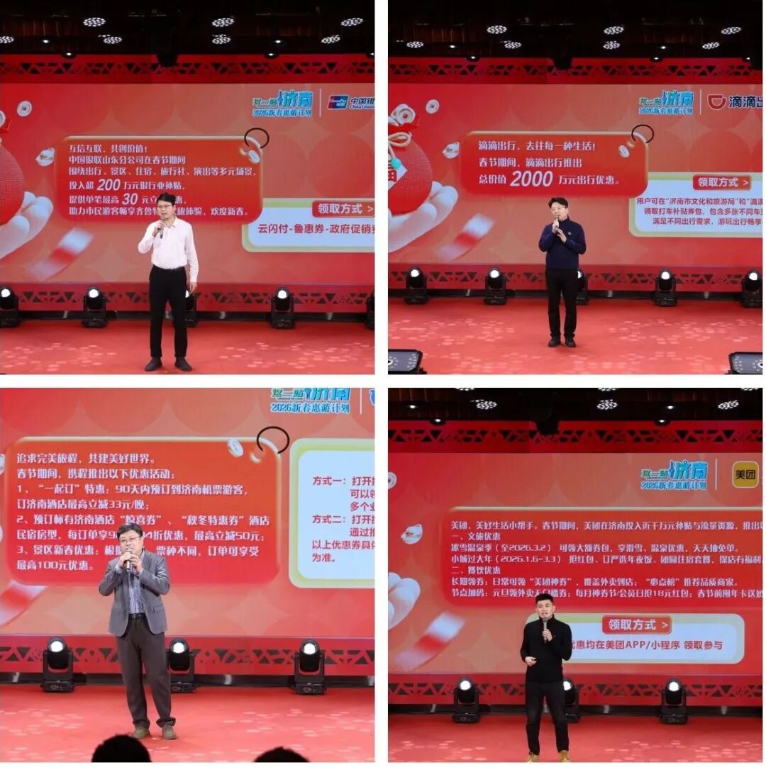 为激发文旅消费潜力,济南市文化和旅游局联合滴滴出行、美团、携程、银联四大平台推出“新春惠游计划”,发放酒店住宿、旅行门票、休闲娱乐、出游通行、美食餐饮等多场景消费补贴,有效降低出游成本,提升游玩体验,让市民游客“惠游泉城,乐享新年”。