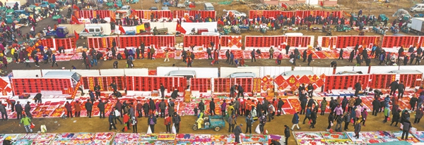 Customers buy Spring Festival couplets at the Poli rural market in Qingdao, Shandong province, on Jan 22. Dong Bo/For China Daily