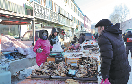As Spring Festival approaches, the market in Quchaihe town, Jilin province, is attracting more visitors with its local food and produce. The stalls brim with treasures, such as wild mushrooms plucked from nearby mountains and Korean-style pickles.