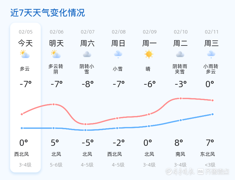 未来三天,烟台市将迎来雨雪天气。周六阴转小雪,气温降至-8℃至-5℃;周日小雪,气温进一步下降至-7℃至-2℃;下周一天气转晴,气温略有回升,但北风仍较强。由于雨雪天气可能导致道路湿滑,建议市民出行时注意交通安全,尤其是驾驶车辆时需减速慢行,保持车距。