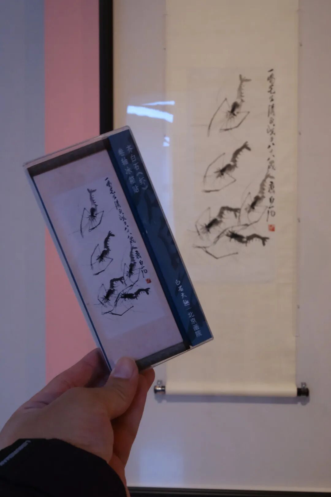 比如,扇形明信片使用了光栅工艺,让扇面上的图画随着摆动而变化。“动”起来的墨虾,更加让人眼前一亮。