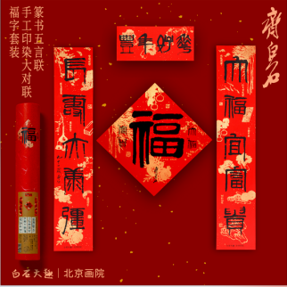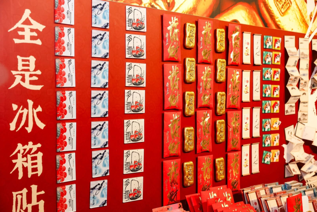 “发财金砖”冰箱贴、手工印染大对联、福字套装、“钟馗纳福”对联冰箱贴……为今年的年味增添艺术气息。