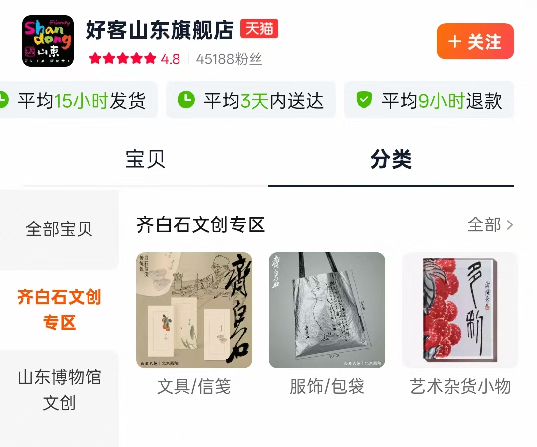 路径二:好客山东旗舰店→宝贝→分类→齐白石文创专区