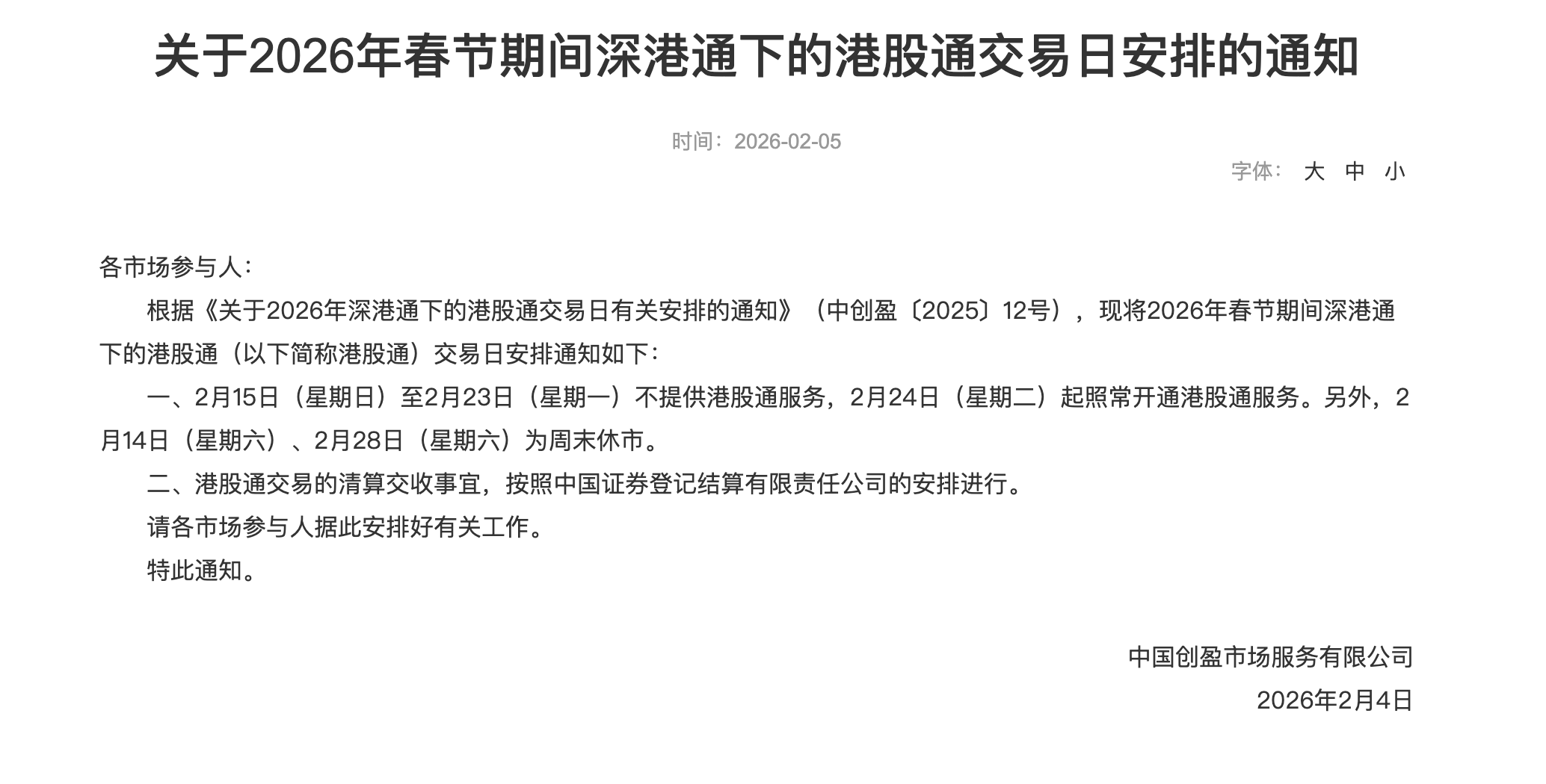 此外,沪深交易所还发布了2026年春节期间沪深港通下港股通交易日安排的通知。