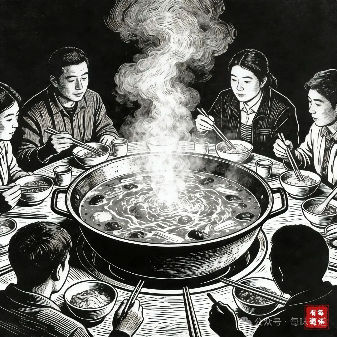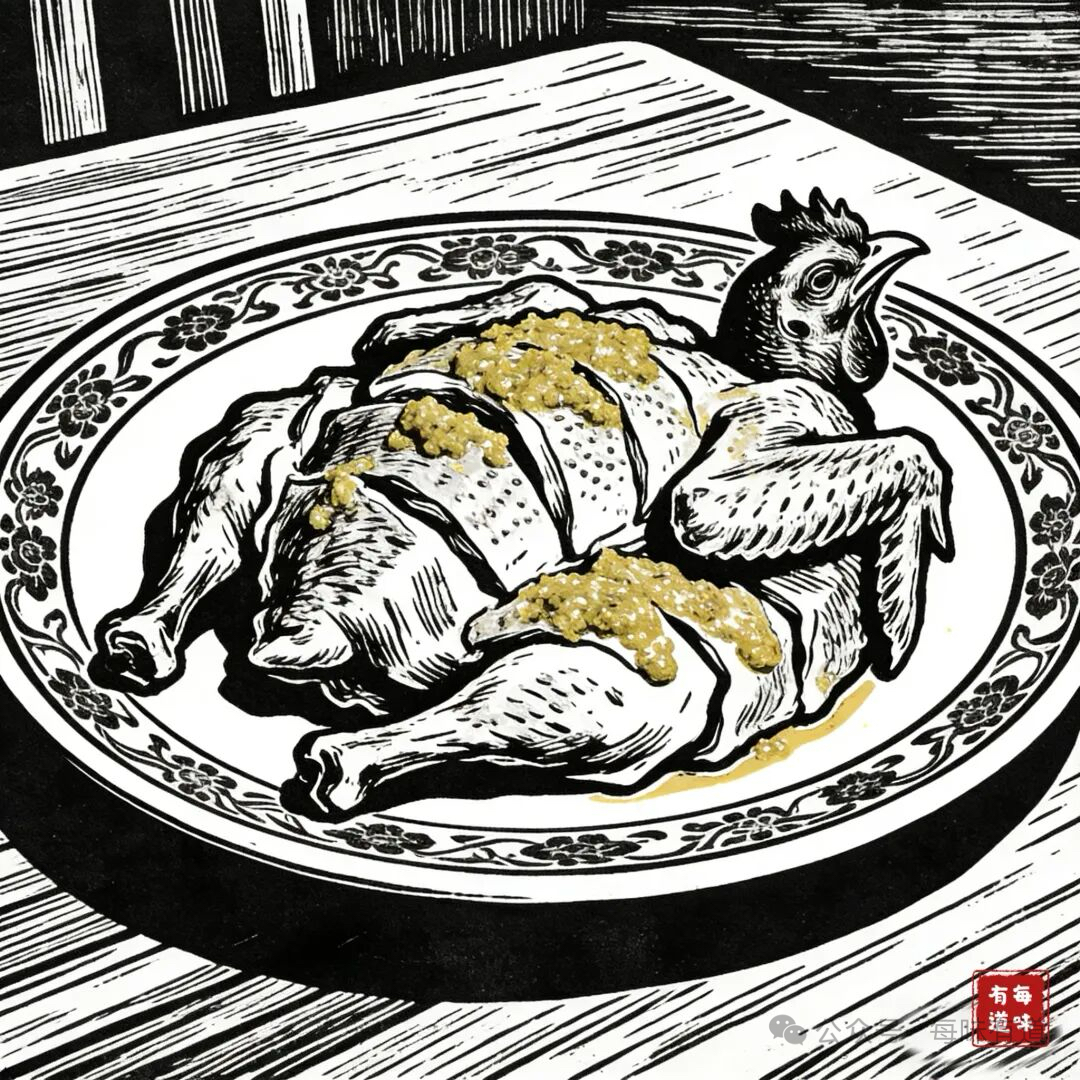 正午的饭铺,必是朝天锅的天下。锅无盖,朝天而煮,一锅老汤,从早熬到晚,猪杂、鸡肉、丸子、豆腐,皆在汤中打滚。汤滚肉烂,舀一碗,撒上香菜末、胡椒面,或肉或菜,卷上刚烙的饼,趁热下肚,浑身都通泰了。若论下酒的硬菜,那得是富郭庄的芥末鸡,鸡煮得嫩,芥末调得冲,入口一激,鼻酸眼亮,醒神开胃,最是地道。