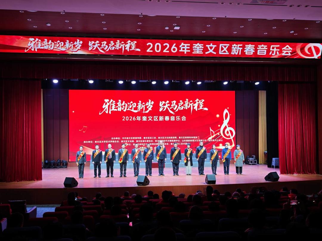 在新春佳节即将到来之际,为充分展现全区经济社会发展成就,营造欢乐祥和、昂扬奋进的节日文化氛围,2月6日下午,“雅韵迎新岁 跃马启新程”2026年奎文区新春音乐会在区市民中心(潍坊星月大舞台)隆重举行。本次活动由区委宣传部、区总工会、区文化和旅游局、区教育和体育局联合主办,区文联、区文化馆、区音乐家协会、区新时代文明实践中心、山东鼎新教育文化有限公司、潍坊星月大舞台等单位共同承办。