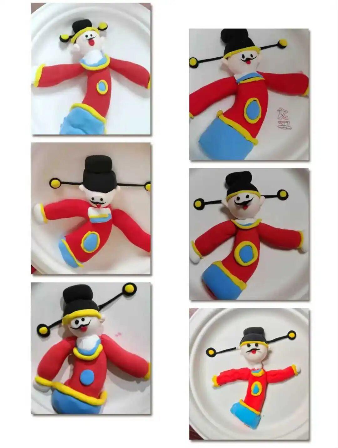 现场,队员们围坐桌前,跟着指导老师的示范沉浸式体验面塑创作:彩色的面塑泥在指尖揉、捏、粘、塑,红袍、蓝裳、黑帽的传统形象渐渐成型——有的作品添上俏皮的弯眉,有的点缀亮眼的圆形纹饰,每个圆盘上的面塑都带着独有的童真创意,连胡须的弧度都各有巧思。从最初的生疏到逐渐熟练,共同体的协作氛围让创作更添乐趣。