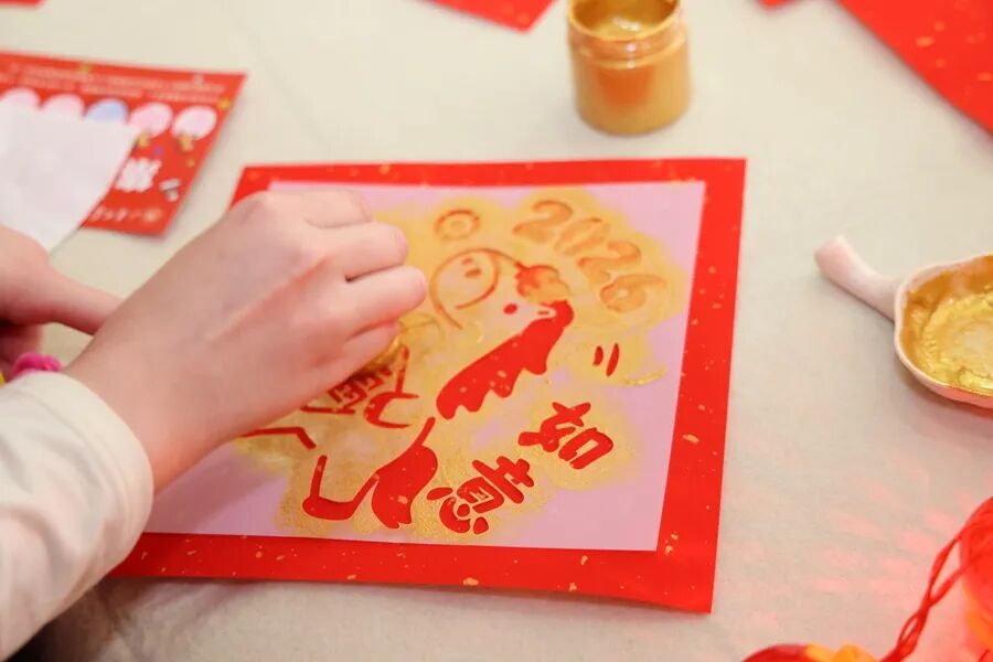 “一马当先・福字迎春”专区,同学们写春联、拓福字,笔墨间饱含新春祝福与期许;“马到平安·香囊纳福”“马载祥瑞·剪窗迎春”“马踏青波·漆扇绘春”等市集体验项目,让大家沉浸式感受传统民俗魅力。集章卡游戏区人气爆棚,手脑挑战、趣味投掷、击球比拼……师生们闯关集章,欢声笑语不断。