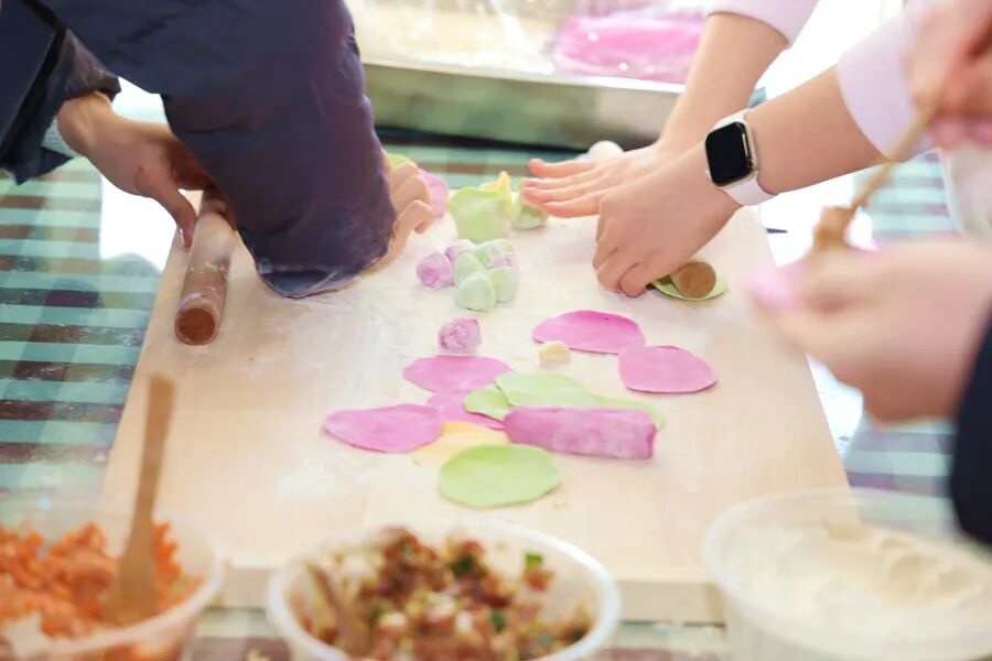 包饺子依旧是团圆饭的重头戏。校领导、师生们分工协作,揉面、擀皮、包馅,动作娴熟默契。一个个饱满圆润的饺子,包裹着深厚情谊与新年的美好祝福。