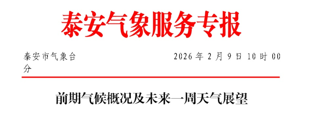 2月9日10时,泰安气象台发布前期气候概况及未来一周天气展望。