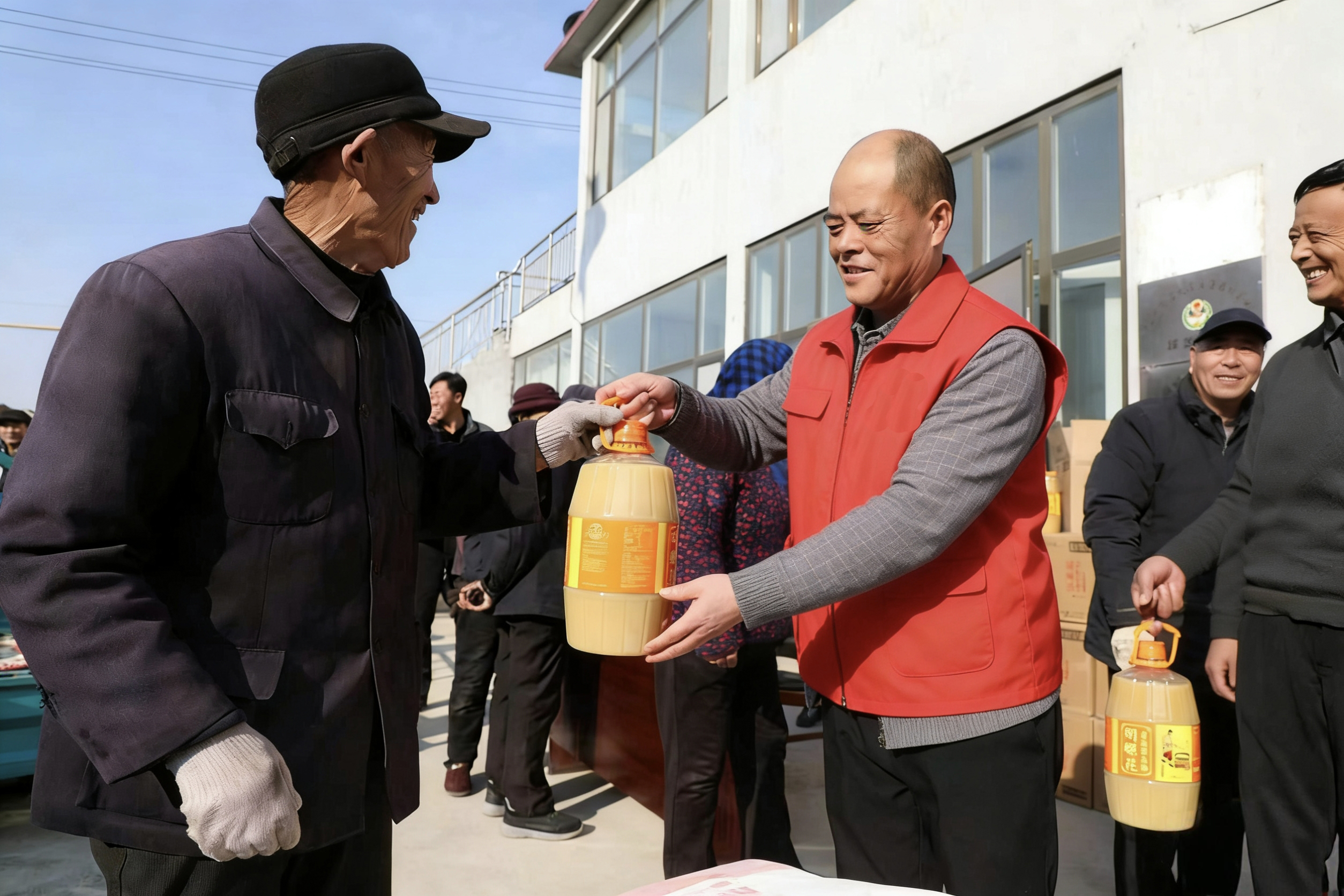 在滨海镇垛瞿阝村新时代文明实践站(村委会大院)内,107名70岁以上老人有序排队,村“两委”干部与新时代文明实践志愿者们分工协作,一边细致登记信息,一边将沉甸甸的慰问物资递到老人手中。