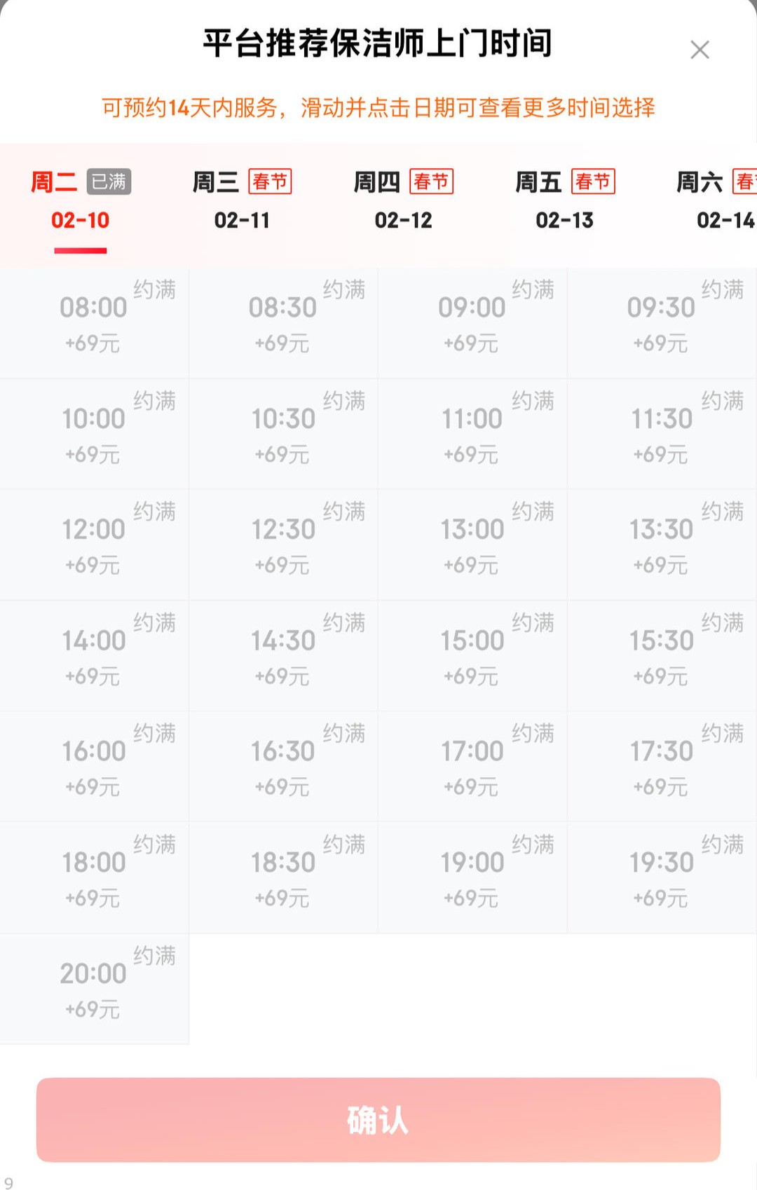 临近新春,部分线上平台家政保洁已显示预约满