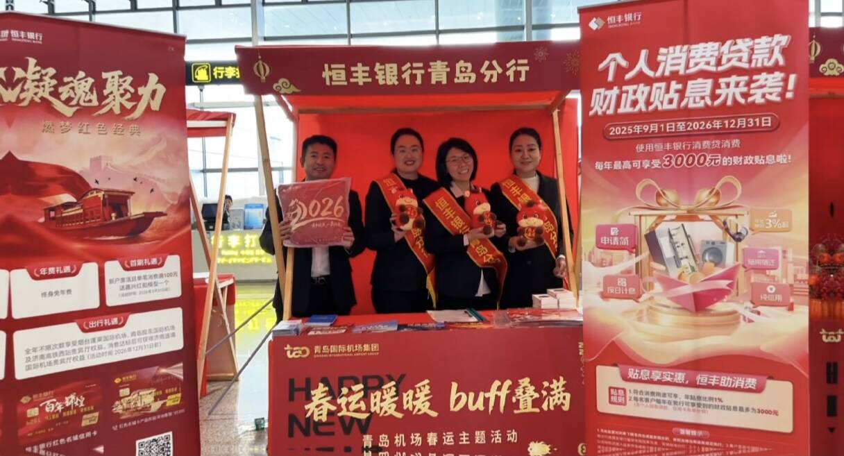 新春将至,消费市场暖意渐浓。为深入贯彻中央经济工作会议“把恢复和扩大消费摆在优先位置”的工作部署,落实个人消费贷款财政贴息优化政策,恒丰银行青岛分行精准把握春节消费旺季契机,为往来旅客消费升级注入金融活水,让政策红利直达百姓末端。