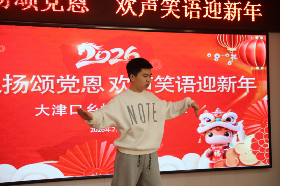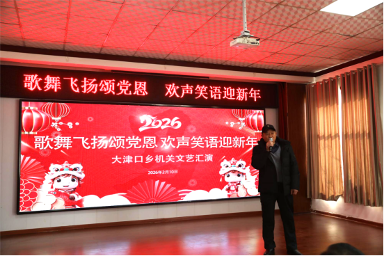 大家欢聚一堂,载歌载舞,一起迎接新年的到来。下一步,大津口乡将在景区党工委、管委会的坚强领导下,同心同德、锐意进取、扎实苦干,全力开创“生态和谐、休闲养生、幸福宜居”大津口乡建设新局面。