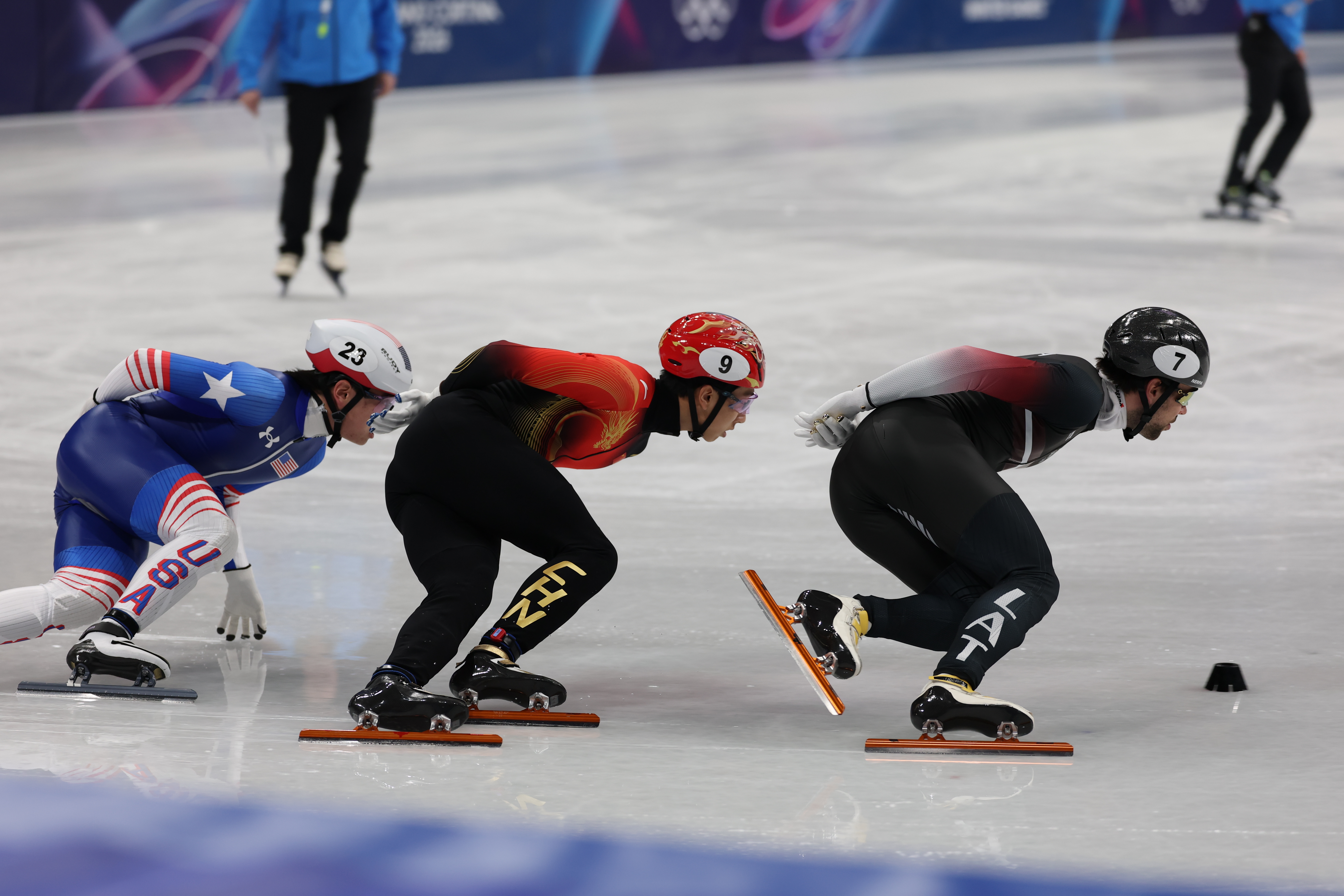 刘少昂 林孝埈 孙龙 当地时间2月10日,米兰-科尔蒂纳冬奥会短道速滑比赛在米兰滑冰馆进行了男子1000米小组赛。三位中国选手刘少昂、林孝埈、孙龙顺利过关,晋级该项目四分之一决赛。 (人民日报客户端)