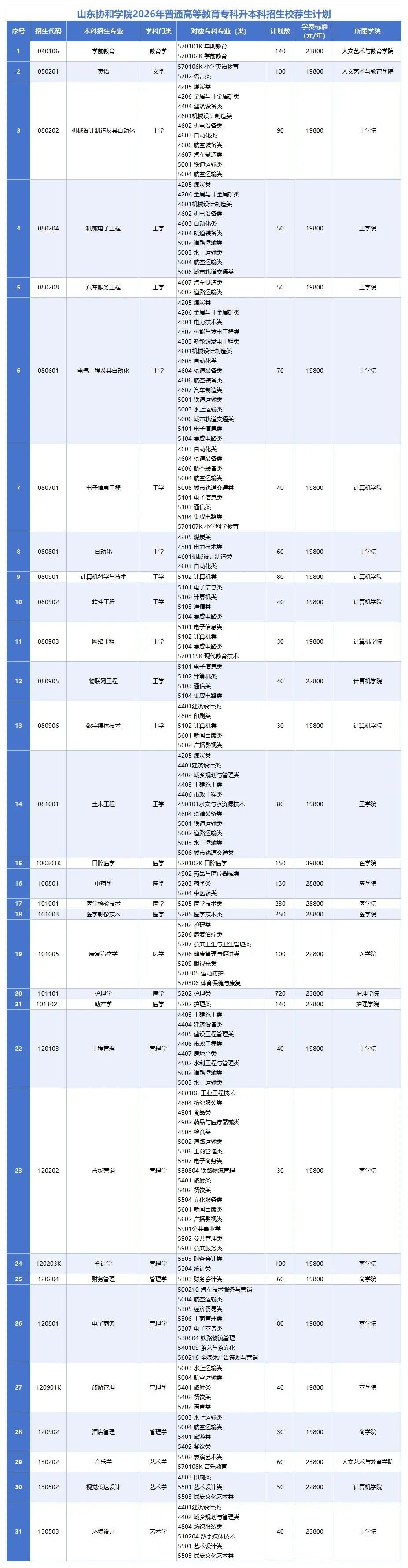 山东协会学院2026年普通高等教育专升本招生校荐生计划