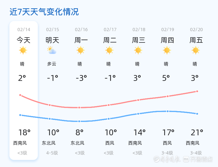 未来三天,临沂市天气将以晴或多云为主,气温波动较大。2月16日(周一)天气晴朗,最高气温8℃,最低气温-3℃;2月17日(周二)天气晴,最高气温10℃,最低气温-1℃;2月18日(周三)天气晴,最高气温14℃,最低气温3℃。建议市民根据天气变化及时增减衣物,尤其注意防范大风天气对出行和生活的影响。