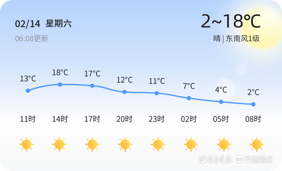 今天是2026年2月14日,农历十二月廿七,星期六,也是西方传统情人节。临沂市今日天气晴朗,气温适宜,最高气温18℃,最低气温2℃,东南风1级,空气湿度62%。情人节作为表达爱意的重要节日,提醒广大市民在享受美好天气的同时,也要注意保暖,出行安全,与心爱之人共度温馨时光。