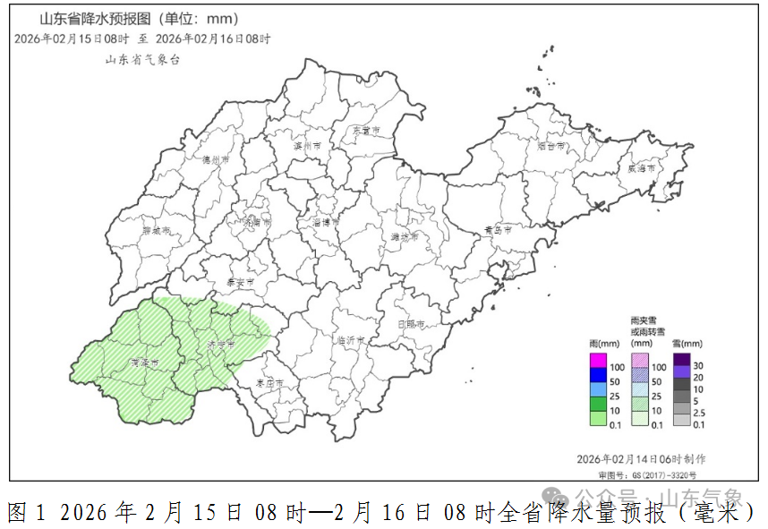 15日白天到夜间,菏泽和济宁天气多云转阴局部有小雨雪,其他地区天气晴转多云。北风,半岛地区5~6级阵风7~8级减弱到4级阵风5~6级,其他地区5~6级阵风7~8级减弱到3~4级。夜间最低气温:鲁西北、鲁中山区和半岛内陆地区-5℃左右,其他地区-2℃左右。最高气温:济宁、枣庄和临沂9℃左右,鲁中山区和北部沿海地区3℃左右,其他地区6℃左右。
