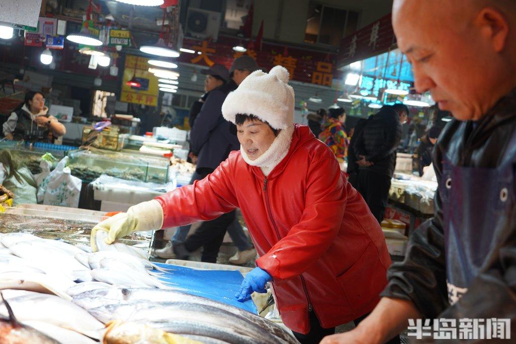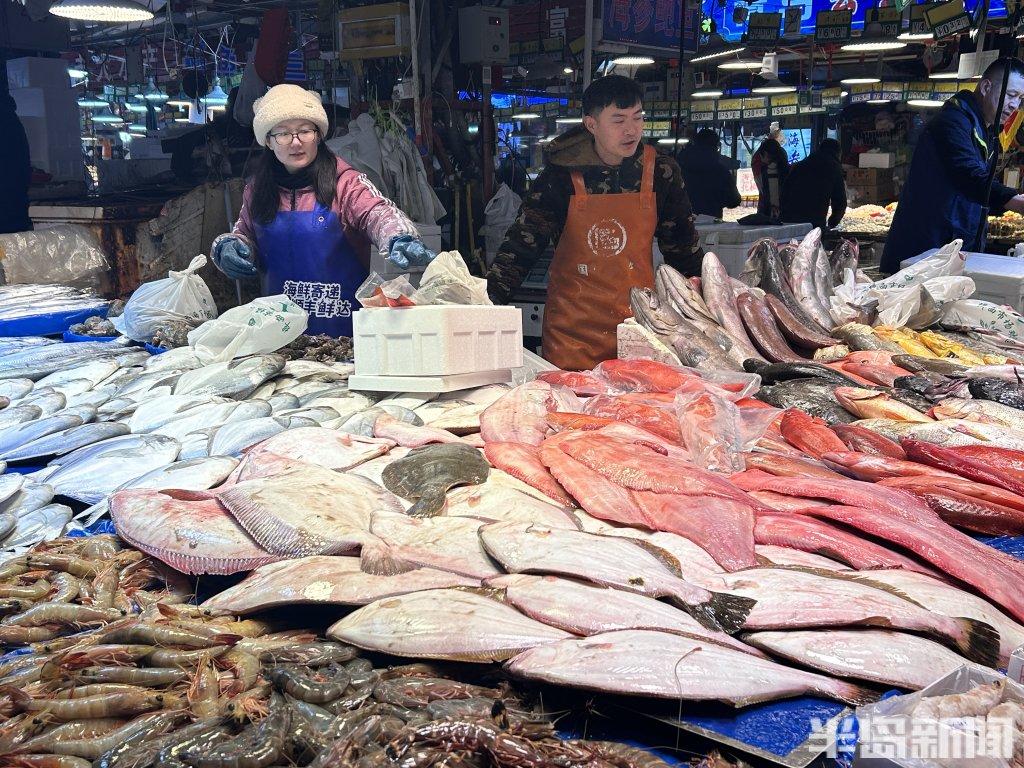 “本地刀鱼两百元左右一斤,这还需要提前预订。”在一专卖鱼类的摊位上,摊主热情地介绍行情。“最贵的就是刀鱼了,今年本地的刀鱼产量少,临近过年,渔船带回来货有限。鲳鱼挺畅销的,大的一百三十元一斤。”多位摊主皆表示,随着春节临近,大部分鱼类价格有所上涨。“不过今年跟去年这个时候比,整体价格还算稳当,有些鱼甚至还便宜了一点。”一位摊主说道。