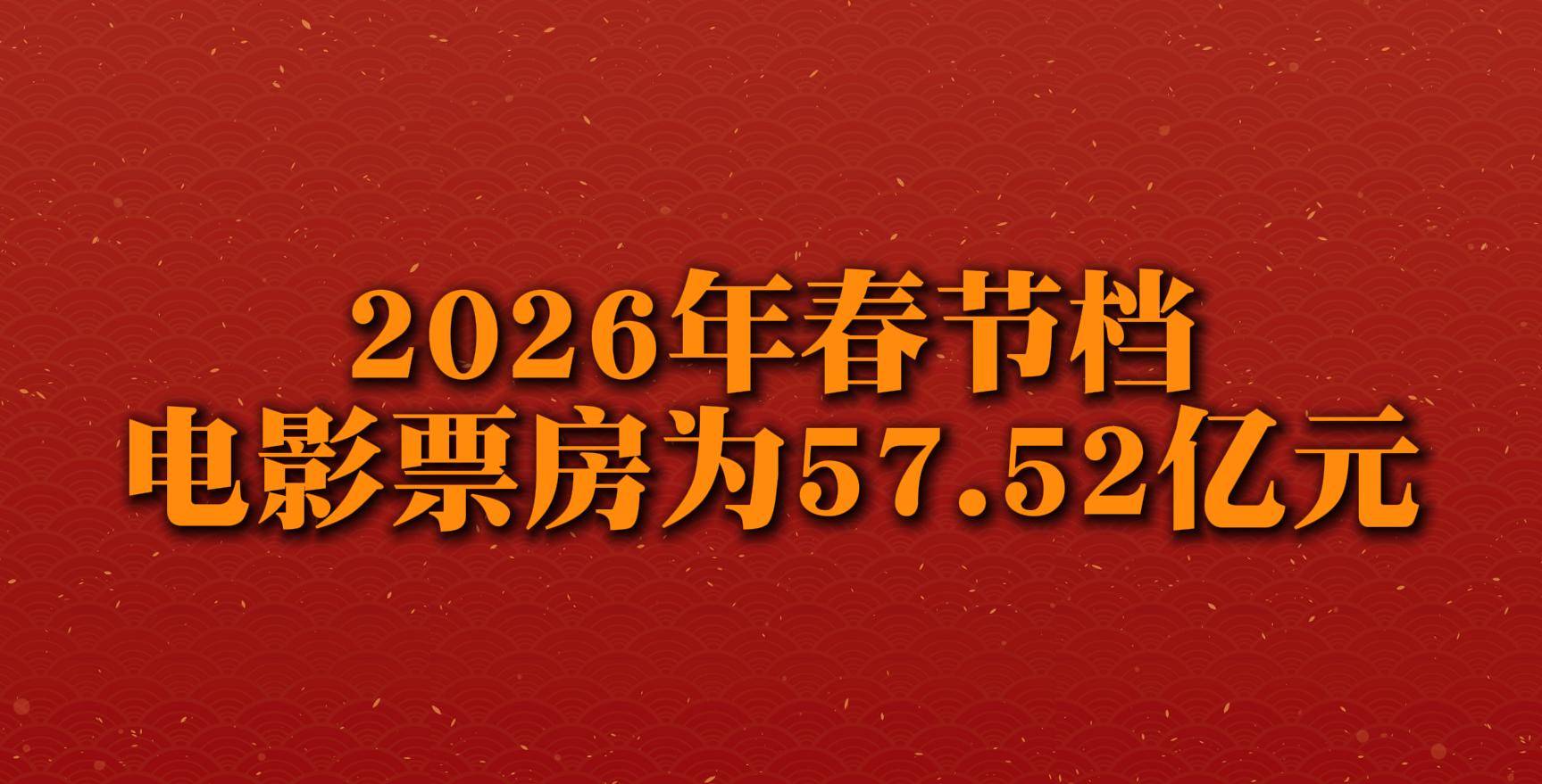 国家电影局2月24日发布数据,2026年春节档电影票房为57.52亿元,观影人次为1.20亿。《飞驰人生3》票房领跑,《惊蛰无声》《镖人:风起大漠》《熊出没·年年有熊》《熊猫计划之部落奇遇记》《星河入梦》位列二至六位。 新华社音视频部制作