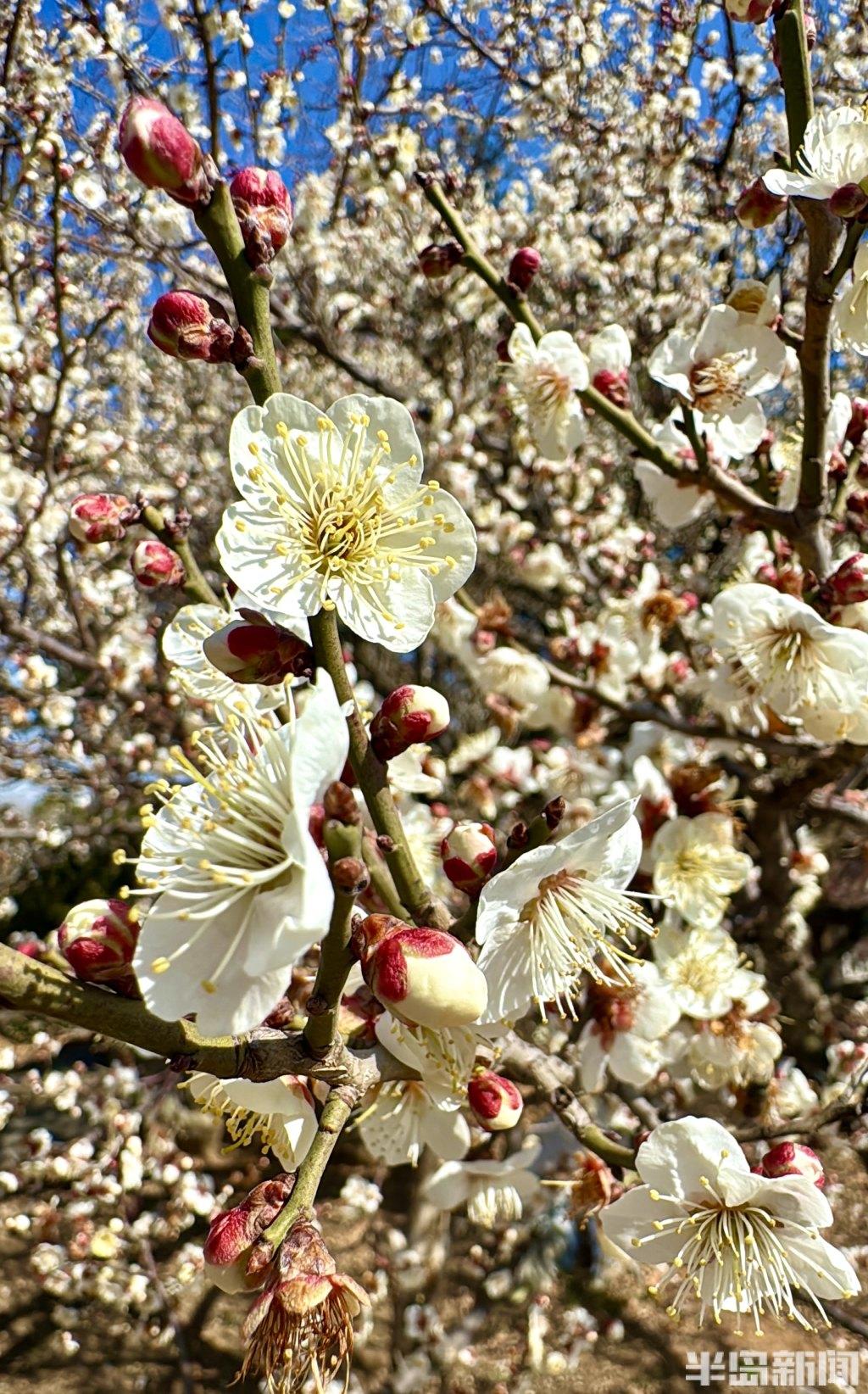 青岛梅园负责人王君杰介绍,今年梅花花期将持续至4月中旬,不同品种梅花次第开放,层层递进,能确保游客在不同时段前来,都能领略到别样的梅韵景致。