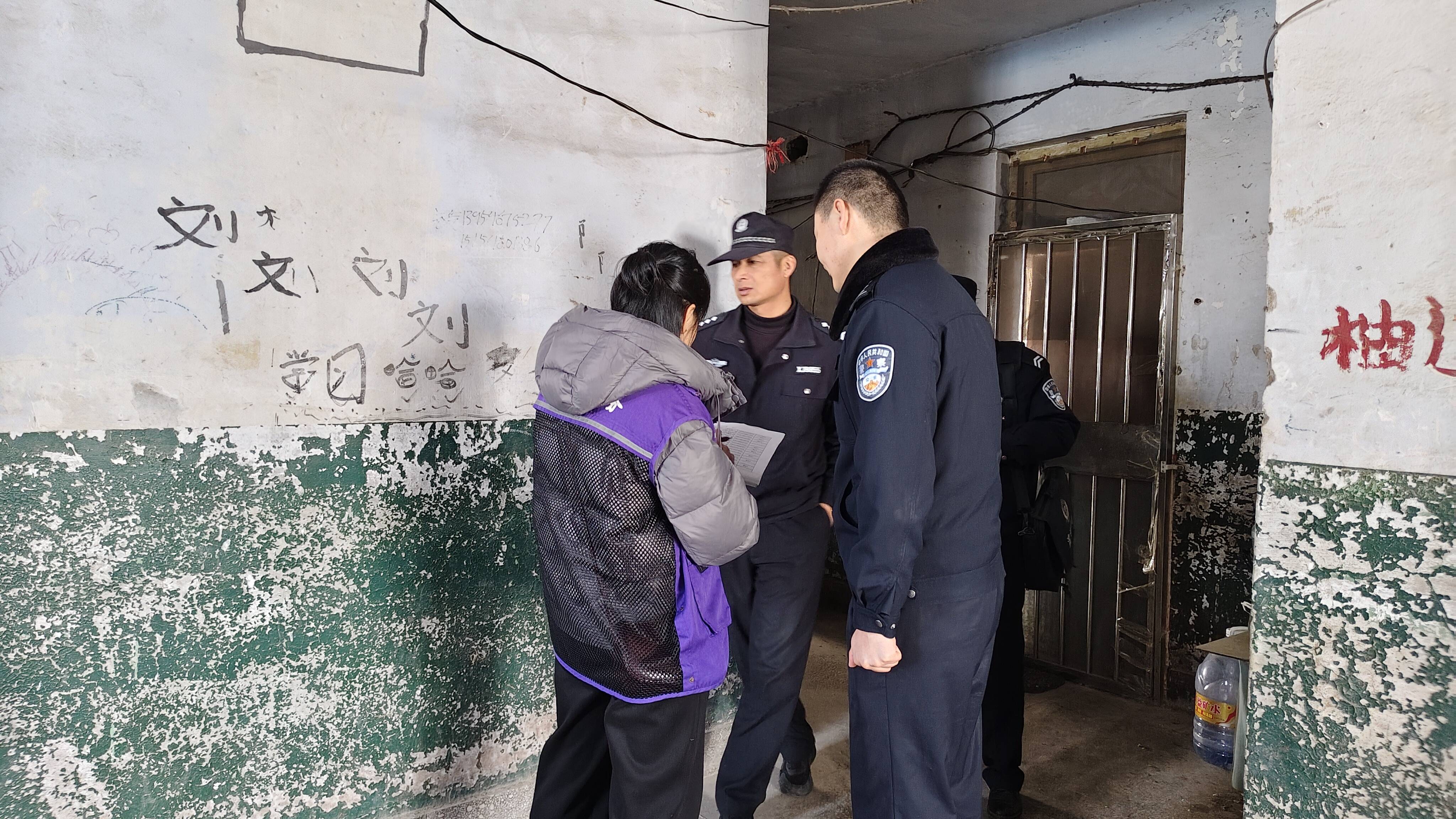 本次行动中,网格员与民警逐户走访,坚持“不漏户、不漏人、不漏项”的原则,对六公司院内宿舍楼的流动人口信息进行全面信息核查,巡查人员还聚焦宿舍楼的公共安全领域,开展“拉网式”隐患排查。在楼道内,工作人员重点检查了消防通道是否畅通,是否存在电动车违规停放、飞线充电等行为;在公共区域,仔细排查用电线路是否老化、燃气使用是否规范等问题。胜南派出所民警还结合典型案例,向流动人口普及防火、防盗、防诈骗等安全知识,提醒大家增强安全防范意识,规范用火用电用气,共同维护居住环境安全,从源头筑牢安全防线。