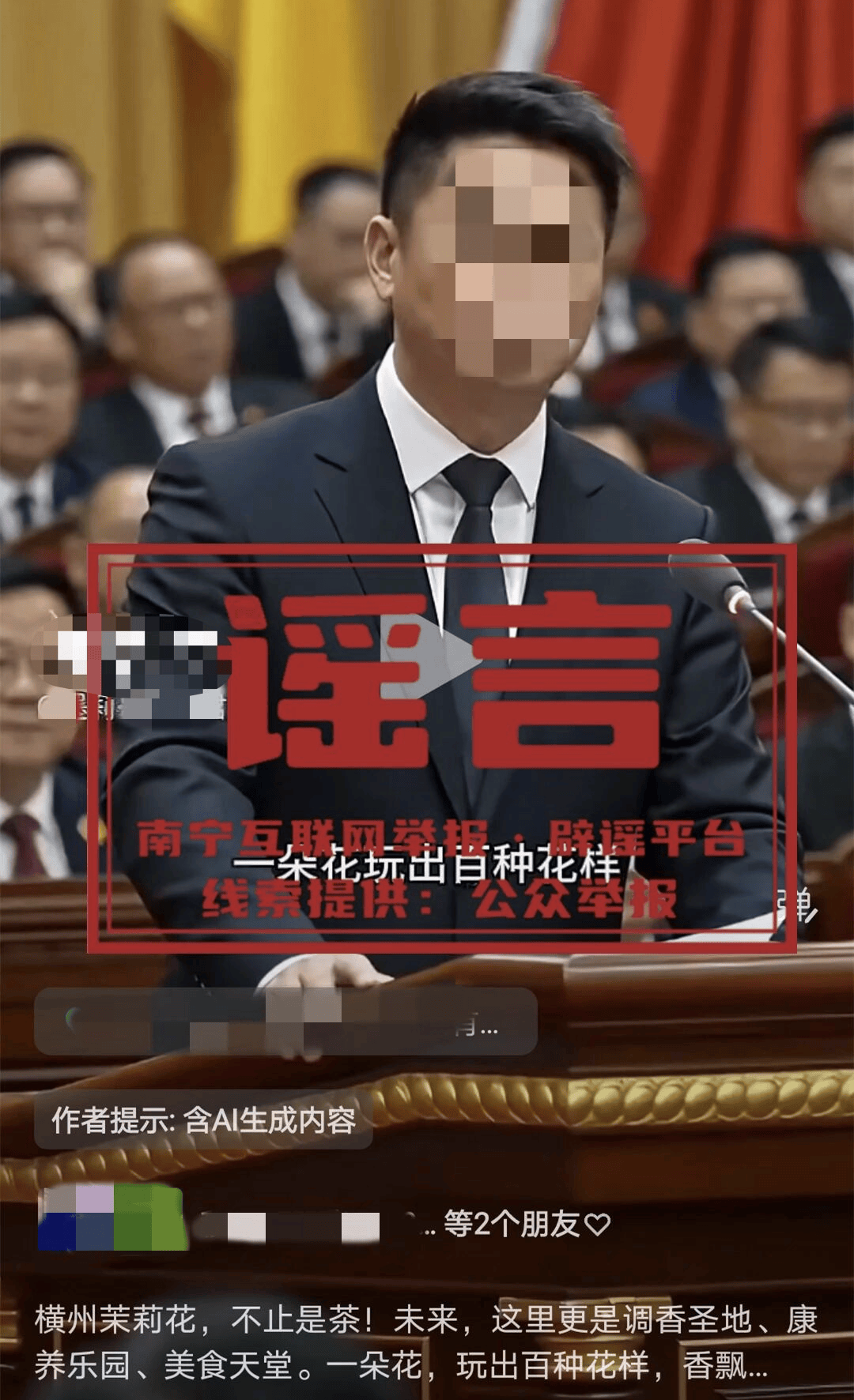 自媒体账号用AI生成“横州开会发言”虚假政务场景!被约谈