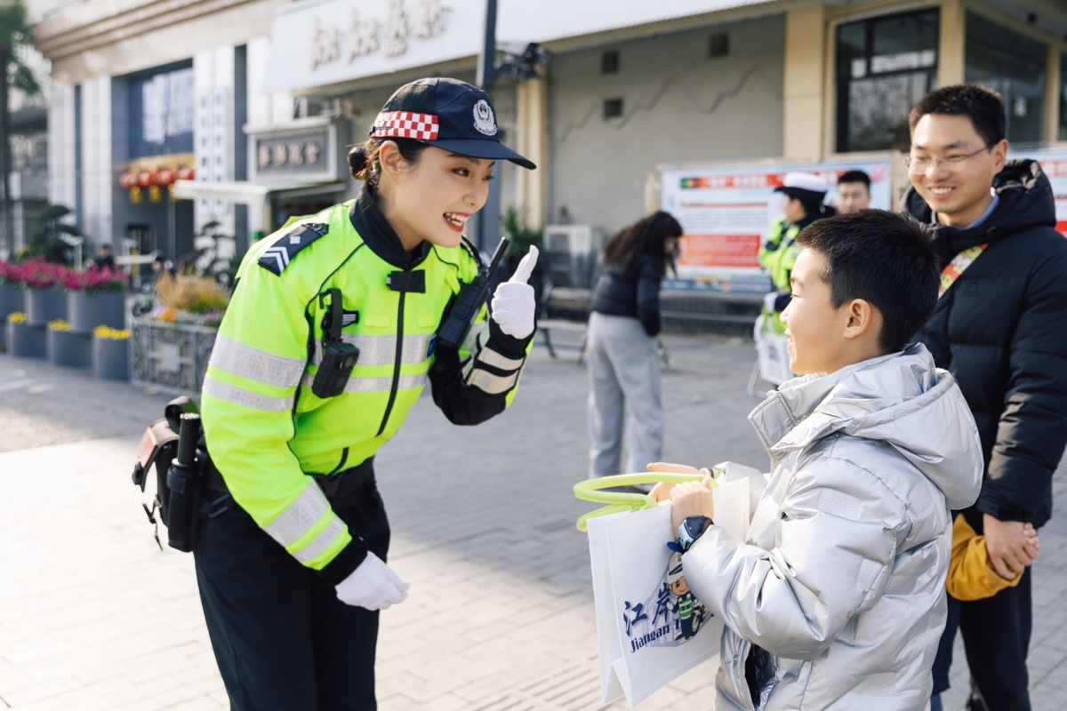 当汉马相遇赏花季,江岸交警精心编制历史风貌区行车停车指南与网红景点分布交通图,在沿江大道、解放公园、古德寺等热门点位设置60余块宣传易拉宝。市民扫码即可一键获取景点位置、最佳路线、停车场位及避堵方案,实现“一码在手、出行无忧”。同时在20余处重要路口设立宣传点,利用无人机+警力全空间开展安全引导,向市民发放资料45000余份。坚持每日定点值守与流动巡查相结合,日均劝导违规车辆30余台,纠正不文明交通行为200余起,从源头净化景区及赛道周边道路通行环境。