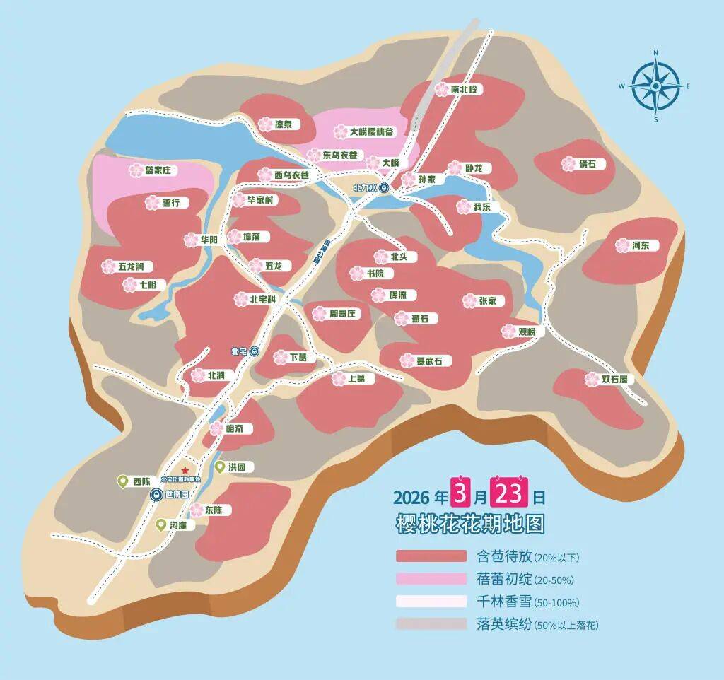 北宅3月23日樱桃花花期地图