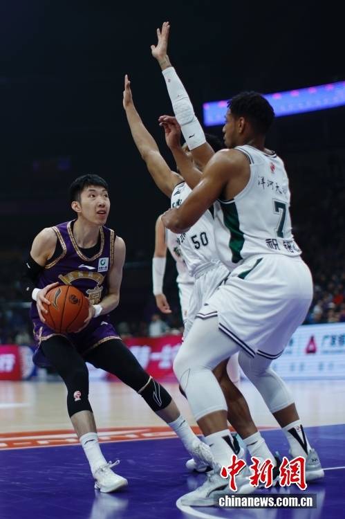 3月26日,在北京国家体育馆举行的2025-2026赛季中国男子篮球职业联赛(CBA)常规赛比赛中,北京控股队主场101比108负于南京天之蓝队。图为北京控股队里勒(紫衣)在比赛中传球。中新社记者 韩海丹 摄