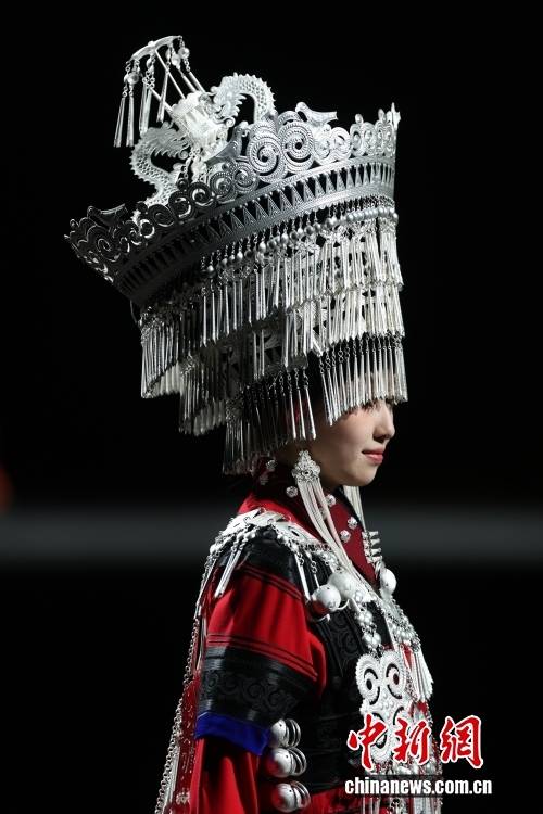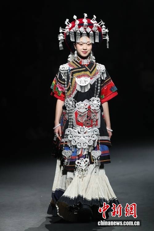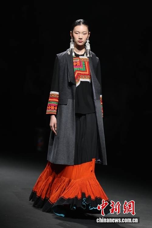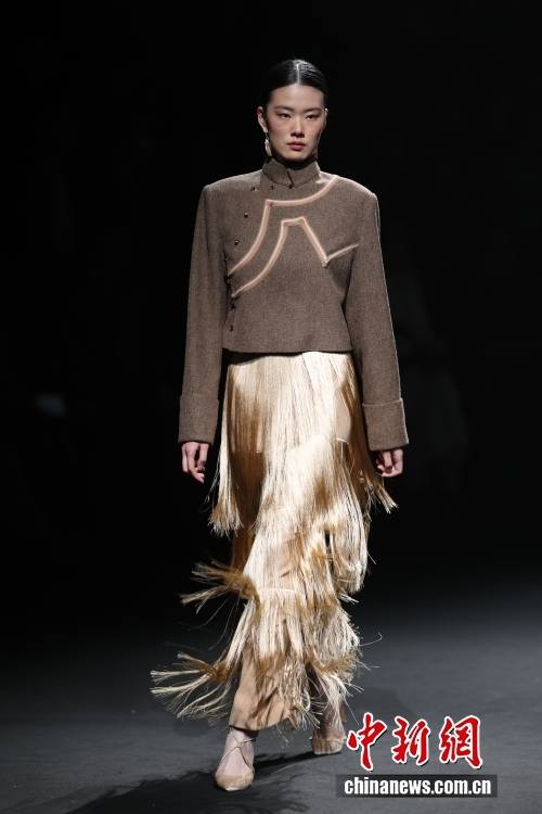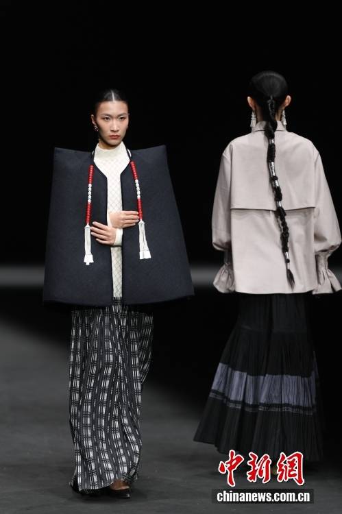3月26日,北京服装学院梁燕教授团队携手凉山彝族创新品牌“衣迪阿诺”时装作品亮相2026中国国际时装周(春季)。图为模特展示时装。中新社记者 盛佳鹏 摄