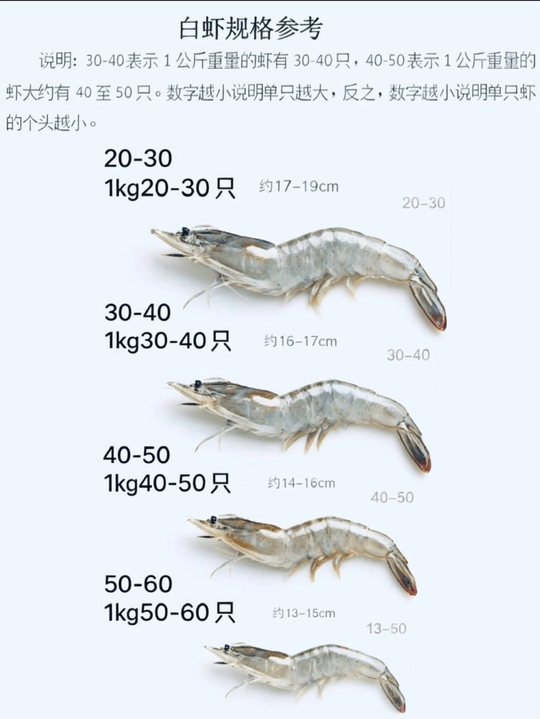 20-30 规格:每千克仅 20-30 只,属于顶格大虾。单只长达 17-19cm,个头堪比 iPhone 13 Pro Max。头小身大、虾体饱满,出肉率远超普通虾。不管是自己吃还是待客,都超有排面!